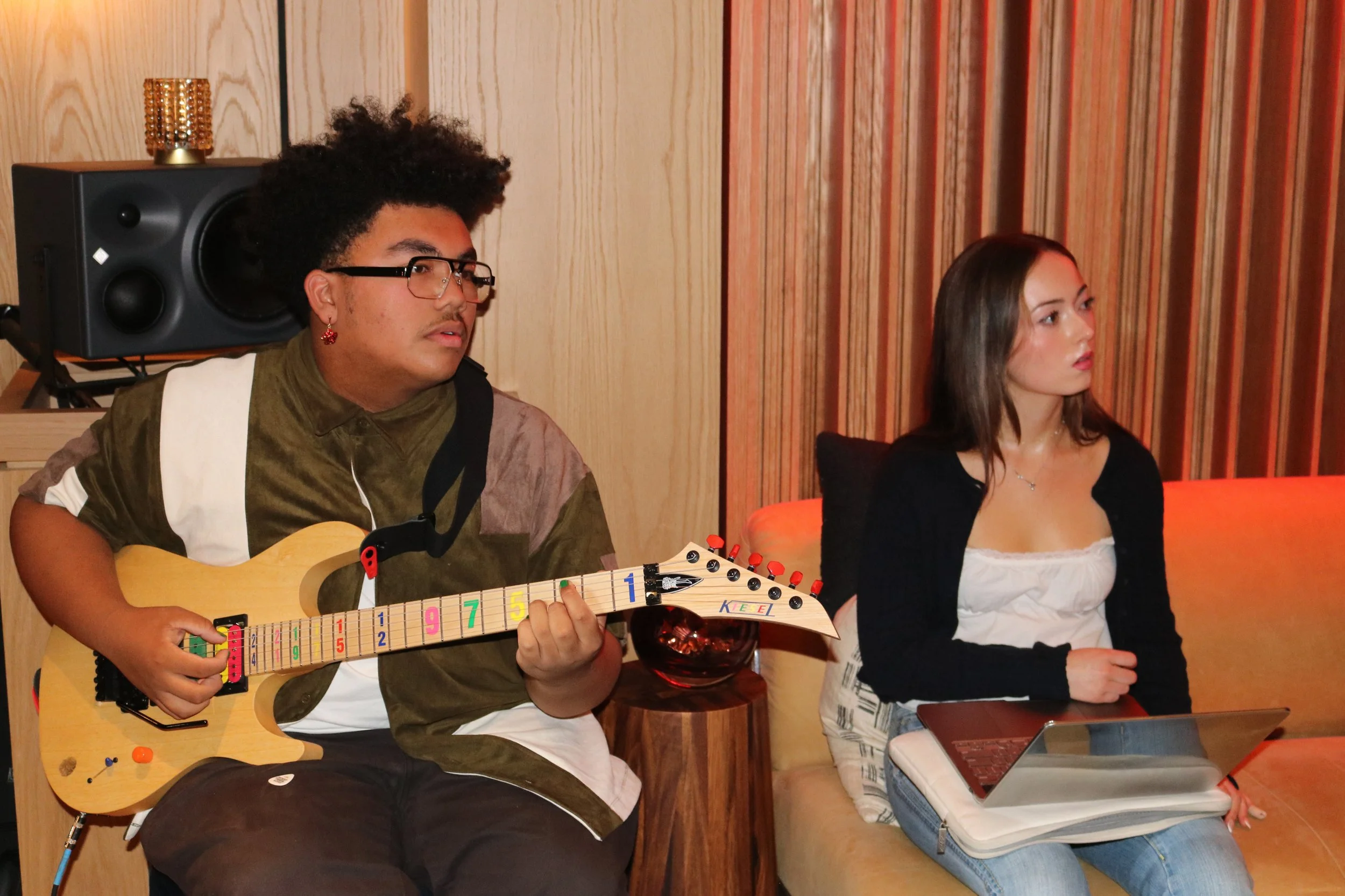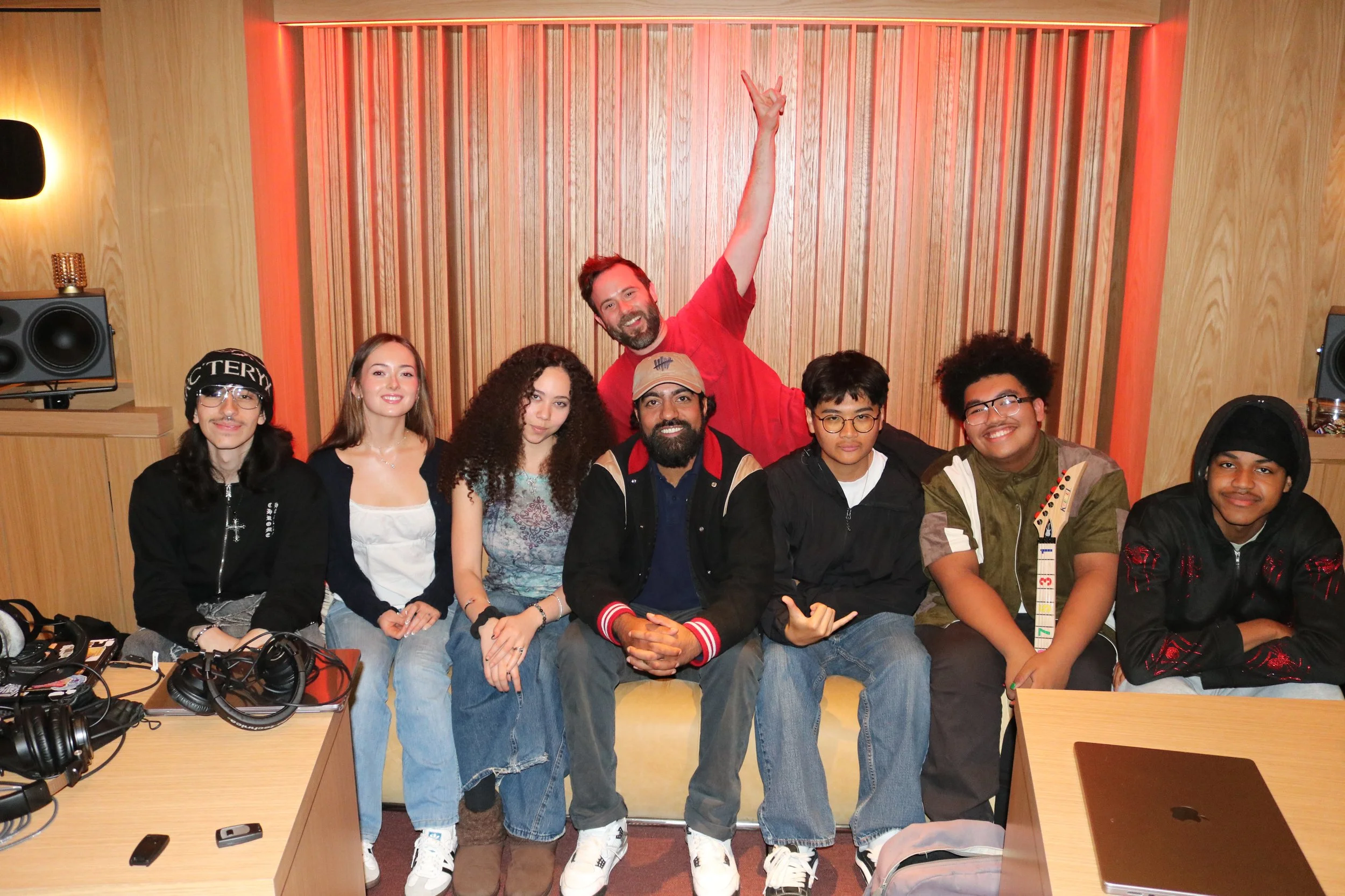After the industry discussion, each student had the opportunity to introduce themselves and share an original song on the studio speakers. 6ix listened closely, offering thoughtful, professional feedback on each piece while encouraging students to explore how their diverse musical influences could come together in a collaborative song.